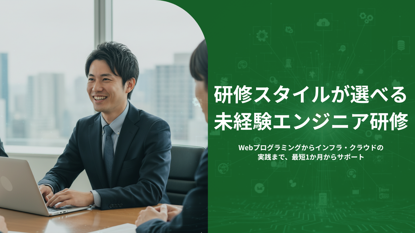 プログラミングスキルの第一歩となる実践研修異業種/異職種から転向する未経験エンジニアに特化した、短期研修プログラムをご提供しています。はじめての方でもプログラミングスキルが身に付きます。(助成金最大90%助成可)